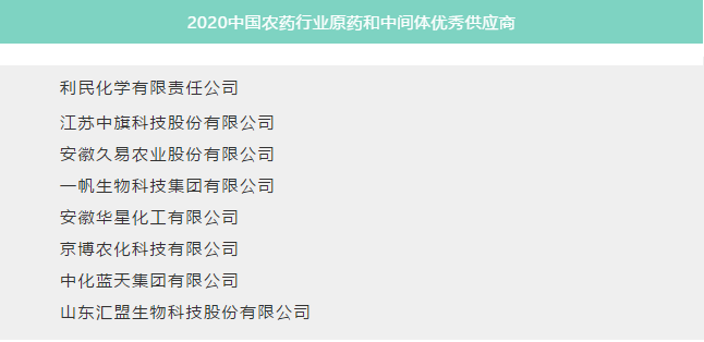 捷報頻傳!一帆生物斬獲2020中國農(nóng)藥行業(yè)優(yōu)秀原藥和中間體供應(yīng)商 |