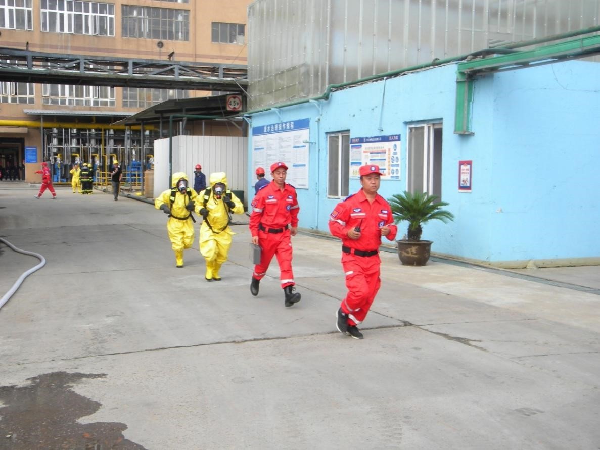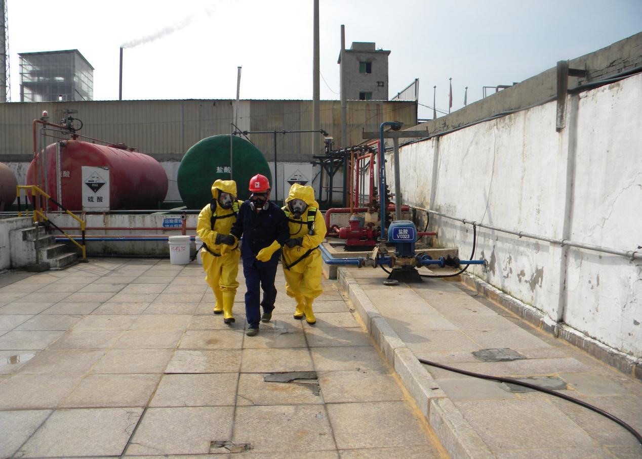 演練內(nèi)容假設(shè)車間、罐區(qū)模擬發(fā)生?;罚}酸)泄漏事故,進(jìn)行有針對(duì)性的應(yīng)急處置,強(qiáng)化突發(fā)事件應(yīng)急預(yù)案演練,促進(jìn)預(yù)案規(guī)定的責(zé)任、制度、措施、應(yīng)急救援物資的落實(shí),鍛煉和提高現(xiàn)場(chǎng)生產(chǎn)員工對(duì)突發(fā)事件聯(lián)動(dòng)應(yīng)對(duì)能力,進(jìn)一步形成統(tǒng)一指揮,反應(yīng)靈敏、調(diào)度有序的突發(fā)事件應(yīng)急救援機(jī)制。