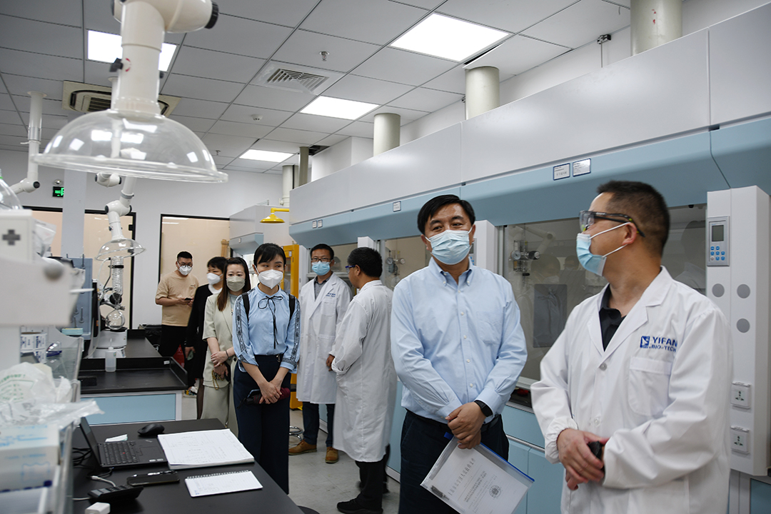 本次負責接待的有上海農(nóng)帆生物科技有限公司的總經(jīng)理吳海琴女士和副總經(jīng)理賈俊超先生,以及研發(fā)中心王攀登副主任。王副主任帶領領導們視察了實驗室,詳細介紹了我們的研發(fā)儀器設備,趙書記非常關心和關注實驗的環(huán)保設施與措施,以及三廢倉庫和三廢處理的情況,看到我們完善齊全的相關配套措施,給予了很大的認可。