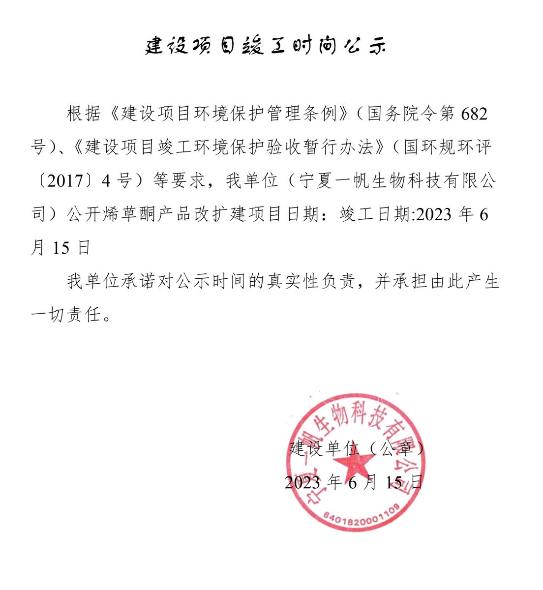 寧夏一帆建設(shè)項(xiàng)目竣工時(shí)間公示