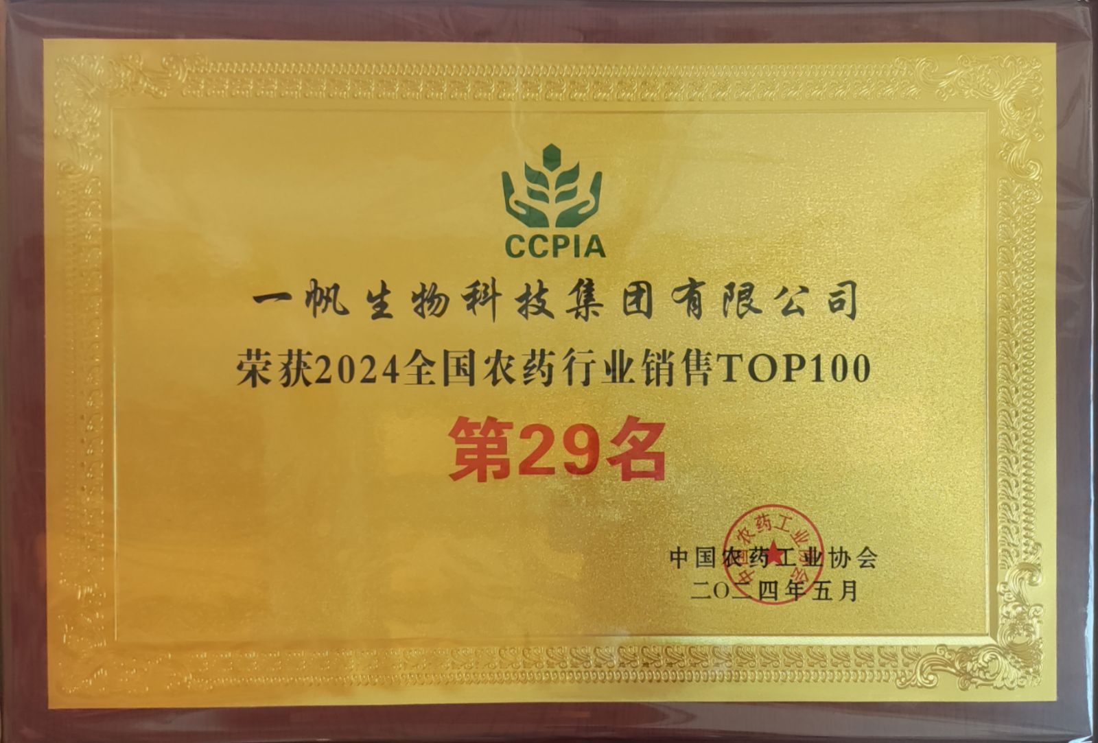 喜報! 一帆生物榮登2024全國農(nóng)藥行業(yè)TOP100榜單第29名! |