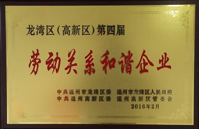 2016龍灣區(qū)第4屆勞動(dòng)關(guān)系和諧企業(yè)
